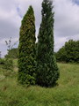 Einige Nadelbäume bestechen dazu noch mit ihrem gleichmäßigen, dichten und von Natur aus geometrischen Wuchs – sie benötigen keinerlei Schnitt, um ihre auffällige Form zu behalten. Besonders prägnant ist der Raketen-Wacholder (Juniperus) ’Skyrocket’, der mit seinem extrem schlanken Wuchs an italienische Zypressen erinnert. Ebenfalls säulenförmig, aber nicht ganz so schmal wachsen der Irische Säulen-Wacholder (Juniperus communis) ’Hibernica’ und der Schwedische Säulen-Wacholder (Juniperus communis) ’Suecica’.Auch bei den Eiben gibt es einige, die durch ihren markanten Wuchs auffallen: Die Säulen-Eibe (Taxus baccata) ’Fastigiata’ bildet dichte schmale Säulen und wirkt wie ein Ausrufezeichen, während die Adlerschwingen-Eibe (Taxus baccata) ’Dovastoniana’ breit ausladend wächst. Ihre an den Spitzen überhängenden Zweige erinnern tatsächlich an die weit ausgebreiteten Flügel eines Adlers. Diese beiden Eibensorten haben dunkelgrüne Nadeln, andere, wie Taxus baccata ’Fastigiata Aureomarginata’, haben ein helleres, gelbgrünes Nadelkleid.