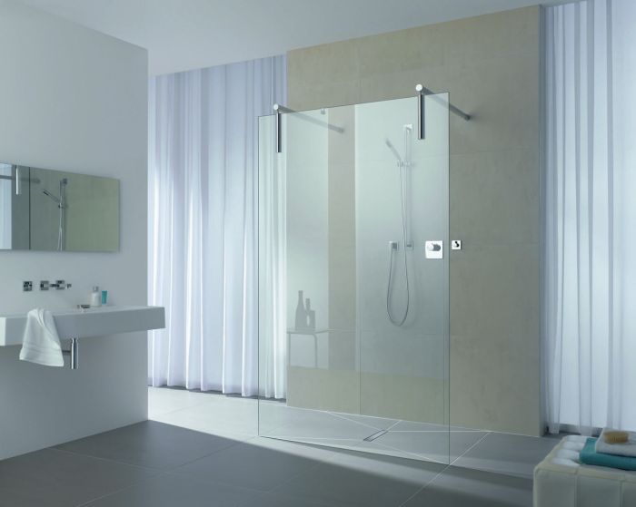 So lässt sich der Duschbereich durch den Entfall jeglicher Stufe völlig gefahrlos betreten. Schmutzempfindliche Ecken und Kanten sucht man vergebens. Der geflieste Duschplatz lässt sich schnell und einfach bei der regelmäßigen Reinigung des Badbodens in einem Zug überwischen. Kombiniert man den bodenebenen Duschplatz mit der Duschkabine Diga, lässt sich der Bewegungsspielraum im Bad deutlich vergrößern. In der Ausführung mit Pendel-Falttüren ist die Duschkabine nahezu vollständig an die Wand anfaltbar. Der Duschbereich kann als Raumfläche genutzt werden – die Ideallösung für kleine Bäder.