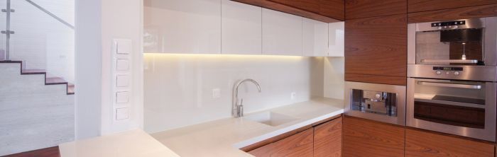 Küchen / Küchenmöbel: Ob Umzug, Renovierung oder der Kauf einer neuen Küche – wenn es Zeit für eine neue Optik und alternative Materialien wird, muss es nicht immer ein traditioneller Fliesenspiegel sein. Wer aufwändige Bauarbeiten scheut: In den meisten Fällen können die neuen Küchenspiegel mit Profilen vor den alten Fliesen angebracht werden.